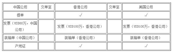 2、物流:很簡單,如果中國A公司有自營進(jìn)出口權(quán),則可由A公司直接出口報關(guān)(如果沒有,則您可以指定代理公司為其出口報關(guān),當(dāng)然也可以讓工廠自己去找代理),報關(guān)金額當(dāng)然為80萬,并且是賣給香港公司,但貨物目的港為美國,也就是由中國大陸直接將貨物發(fā)到美國客戶那邊,絕對不需要經(jīng)過香港轉(zhuǎn)港的。